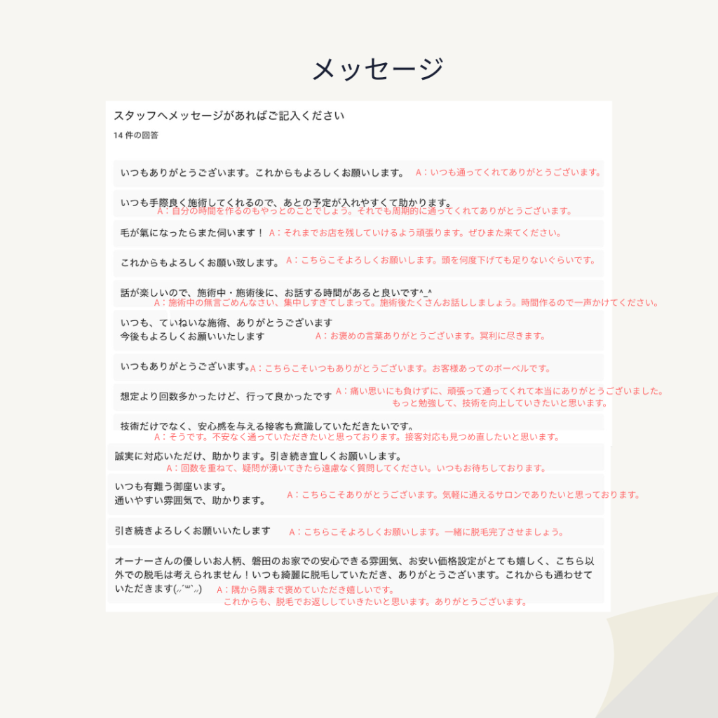 一部の声にお応えして、一言ずつですがコメントお返ししています。